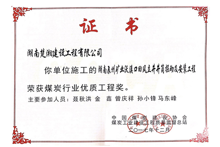 煤炭行業(yè)“優(yōu)質(zhì)工程獎”